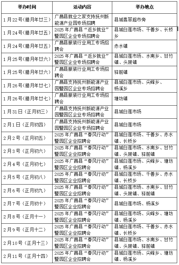 广昌县关于举办2025年“春风行动”暨园区企业系列招聘活动安排的通知